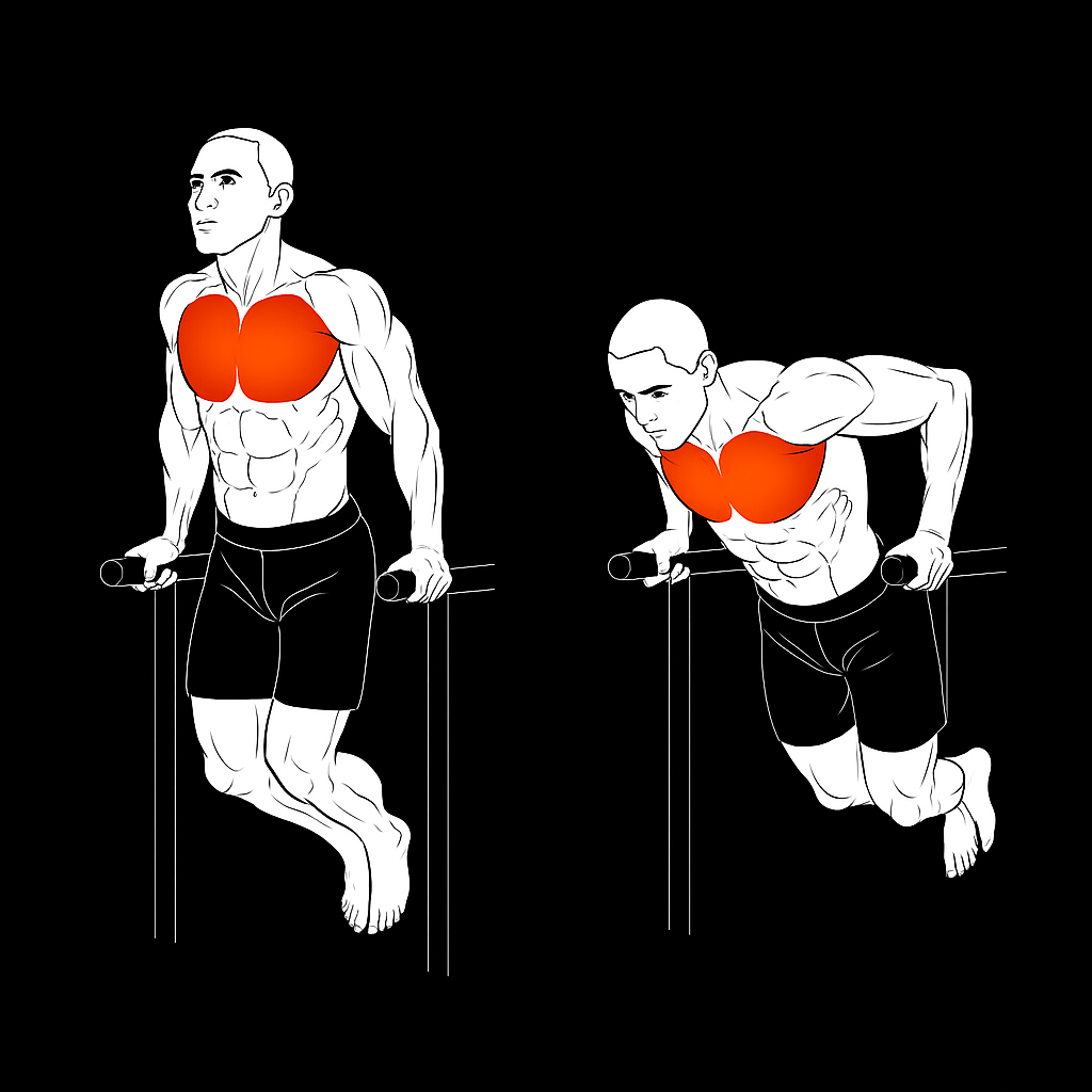 Why: One of the best movements for loading the lower chest. Dips also hammer the long head of the triceps when leaning forward.