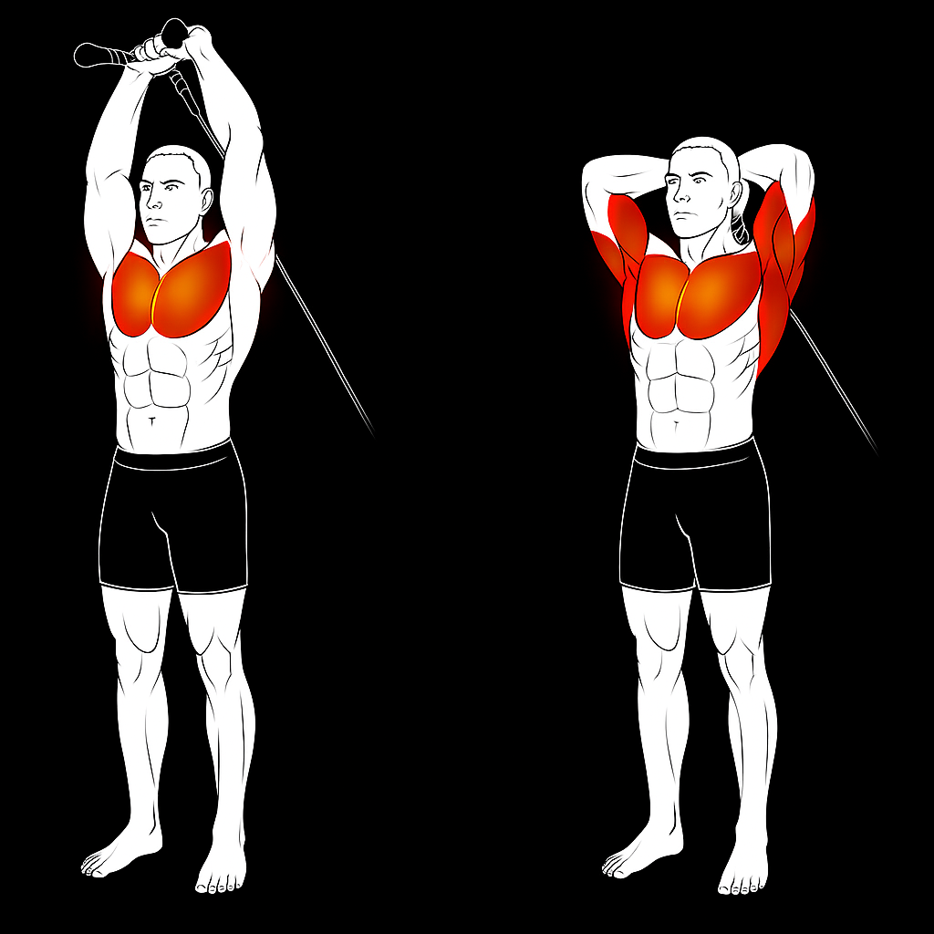 Form Key: Slight forward lean, slight bend in elbows, cross wrists at the bottom for full contraction.